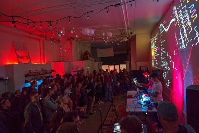 performed with dan gorelick at syzygy. really loved working with dan on our concept where we started from nearly blank screens (i started with only one function describing an fft spectrum and worked my way up from there), and was also glad i was able to integrate some realtime analog camera work of dan playing live cello.