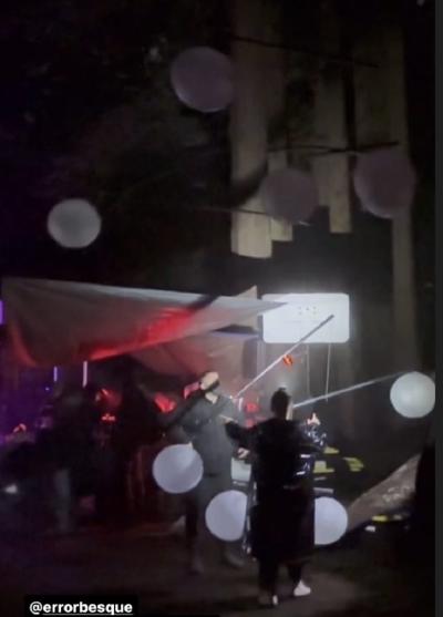 We ended up producing something a lot of people actively complimented during the event (!), and actually if we had tried to incorporate LED bars at all in this installation (50 lbs of gear which I insisted upon bringing as a backup), they would have shorted in the heavy rain we experienced on-site. The rain also produced mist that was perfect for visually highlighting the laser beams as well as diffusing the light across the dance floor.