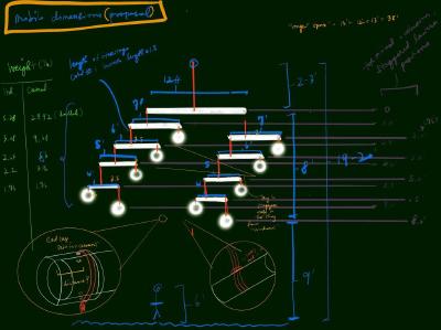 J. spent many days and multiple site visits speccing out the highline attachment and deciding which trees would be ideal for the line. We decided on a single highline where the mobile would be hung from the center on a rotor – J. would set the height manually given my feedback.