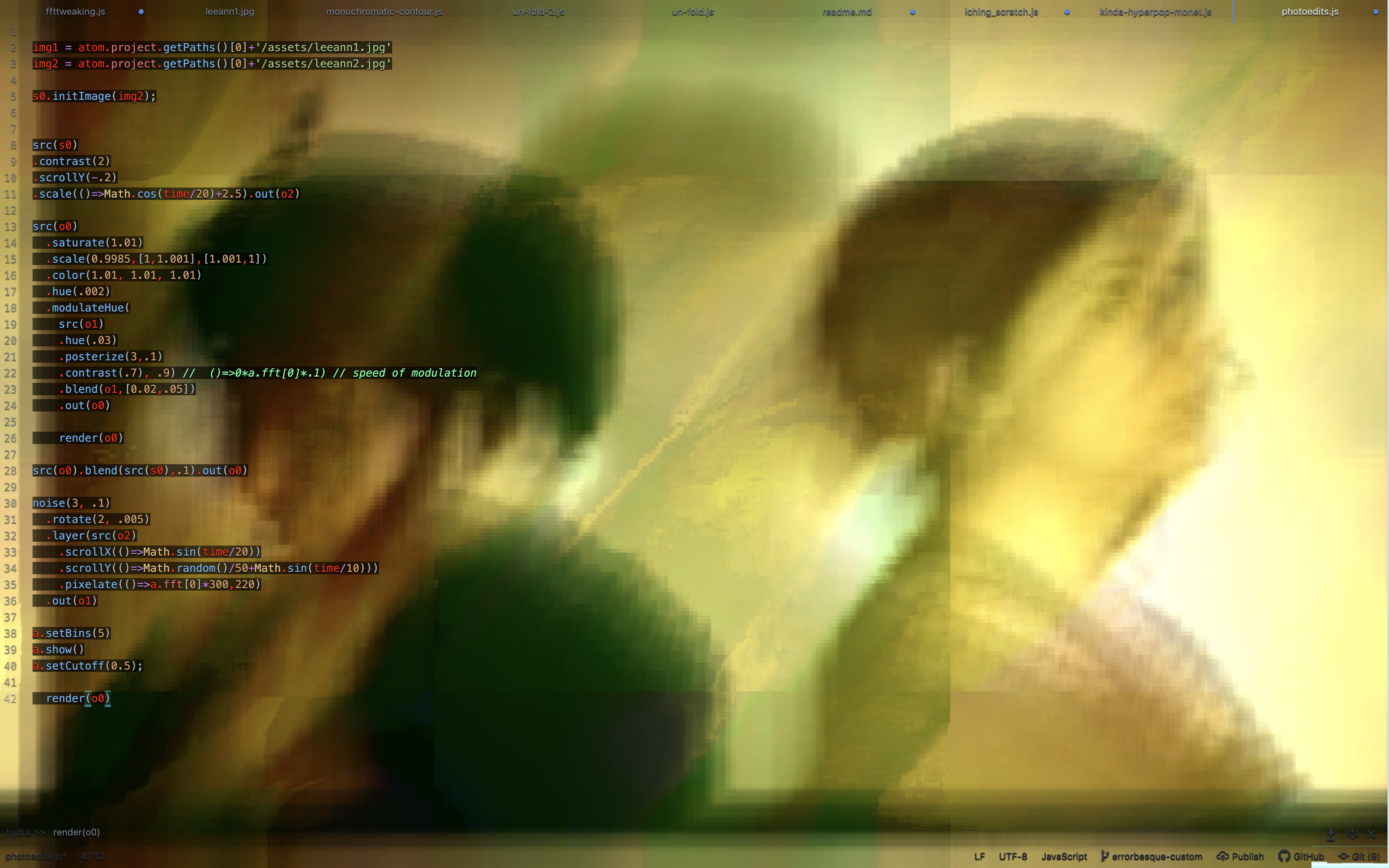 midway through (maybe at 12:00) you can see me wipe the codebase and i start from scratch! :x the second half was thus totally improvised and it still ended up looking surprisingly cool.